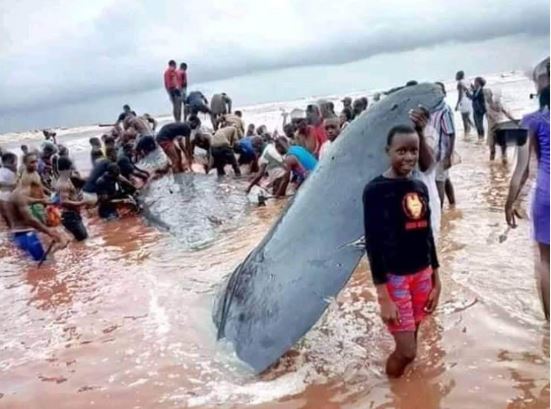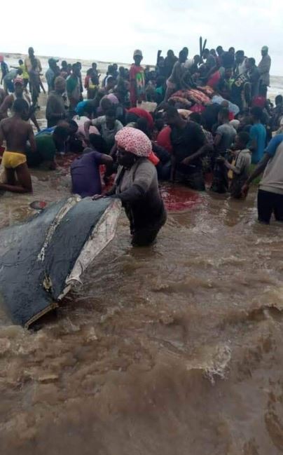 These are images of a grounded whale which was killed in the Niger Delta part of Nigeria