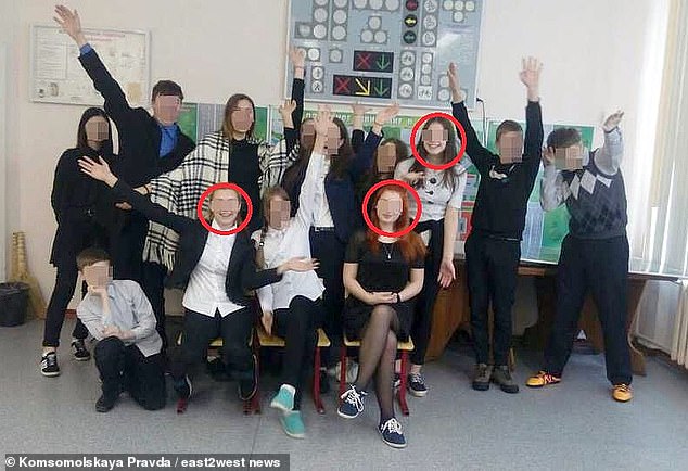The girls (circled) had all gone to school together and were considered to be close friends. Vika was physically smaller than her friends
